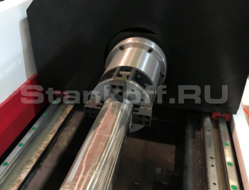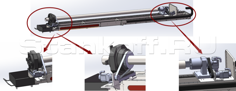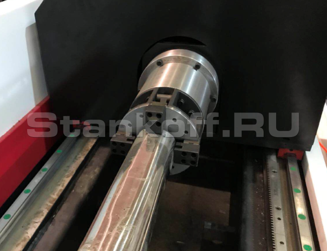 Передний патрон труборезного механизма — электрический, задний патрон — пневматический. Автоматическая регулировка под диаметр обрабатываемых труб. Для синхронизации вращения переднего и заднего патронов используется двухсторонний привод.Сервоприводы YASKAWA