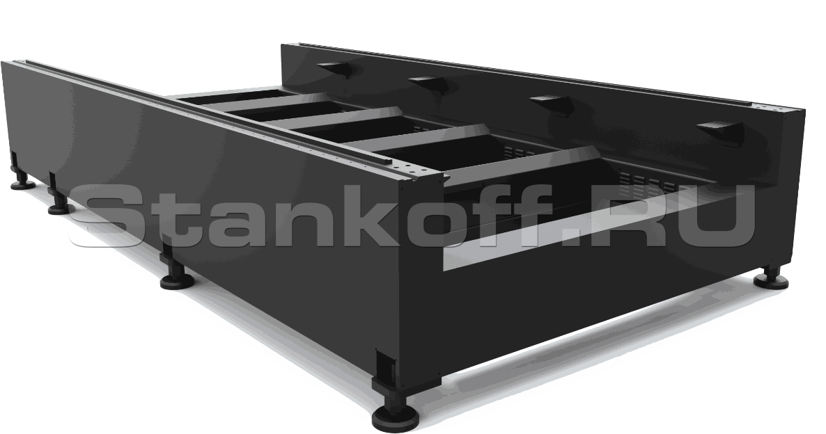 Станина сварена из высококачественной листовой стали и подвержена высокотемпературному отжигу. Все сварные швы выполняются исключительно в защитной атмосфере. Данная процедура обеспечивает долгий срок службы станка без механических деформаций.