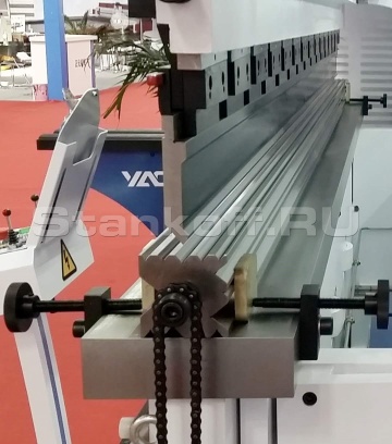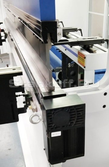 Лазерная система защиты рук для предотвращения травматизма оператора при работе на листогибочном оборудовании. Система блокирует опускание траверсы, если в рабочую зону попадают другие предметы, кроме заготовки.Гидравлический зажим инструмента