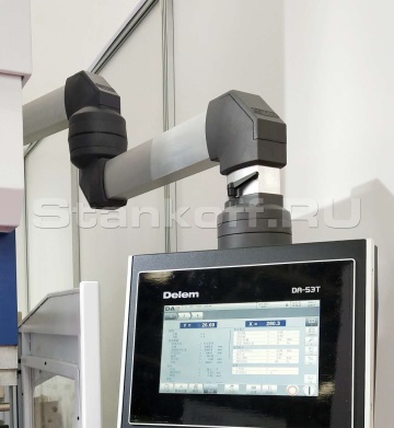Бомбирование — применение гидроцилиндров, управляемых ЧПУ. Нижняя балка состоит из трех толстых листов стали. Центральный элемент, на который устанавливаются матрицы, жестко соединен с боковинами и является элементом станины. Передний и задний лист краями опираются на валы, установленные в центральном листе. Гидроцилиндры установлены так, что их корпуса опираются на передний и задний элементы, а штоки в центральный. При подаче давления по команде ЧПУ цилиндры корпусом давят на передний и задний листы, а штоком поднимают центральный лист. При этом центральный элемент деформируется так, что его середина оказывается выше краев, которые остаются неподвижны. Таким образом, система бомбирования может компенсировать прогиб и верхней балки.Контроллер DELEM DA52S