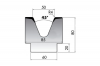 Матрица с одним раскрытием (ручьём) средней ширины предназначена для гибки средних и больших толщин листового металла. Не имеет возможности поворота. Изготовлена из качественной конструкционной стали C45 (560 - 710 Н/мм2). Рабочие поверхности закалены методом индукционной закалки до HRC 54 - 60 (1980 - 2200 Н/мм2). Все рабочие, крепёжные и стыковочные поверхности матрицы шлифованы.