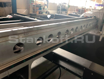 Станина сварена из высококачественной листовой стали с толщиной стенки 12-16 мм и подвержена высокотемпературному отжигу, значительно повышающему ее прочность, твердость, износостойкость. Листовая станина обладает значительными преимуществами по сравнению с станиной из труб, такими как больший вес, прочность и надежность, отсутствие вибраций при работе и, как следствие, обеспечивает стабильный, качественный и точный рез.Сменный стол