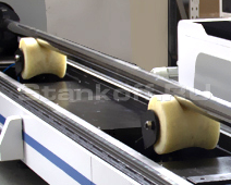 Станина сварена из высококачественной листовой стали с толщиной стенки 12 мм и подвержена высокотемпературному отжигу, значительно повышающему ее прочность, твердость, износостойкость. Листовая станина обладает значительными преимуществами по сравнению с станиной из труб, такими как больший вес, прочность и надежность, отсутствие вибраций при работе и, как следствие, обеспечивает стабильный, качественный и точный рез.Ролики загрузки