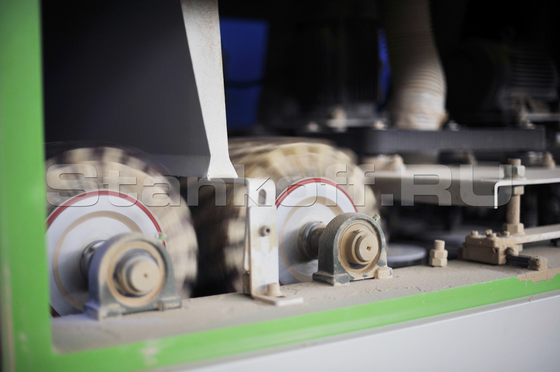 Рельефно-шлифовальный станок предназначен для рельефного шлифования поверхностей различных плитных материалов (ДСП, МДФ), мебельного щита, филёнок, профильных заготовок, погонажа и пр.