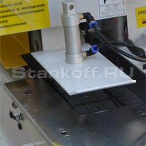 Встроенная гильотина на пневматическом цилиндре с электрическим переключателем, рассчитана для высокой производительности.