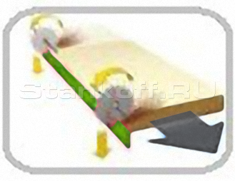 Блокируется подача детали на входе в станок при недопустимом расстоянии между заготовками. Блокировка срабатывает автоматически, предохраняя от повреждения агрегаты.