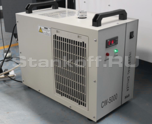 Реализовывает охлаждение жидкости, которая нагревается вследствие поглощения избытка тепла, который выделяется в ходе генерации лазерного излучения, данная процедура осуществляется принудительно. Применение чиллера позволяет осуществлять контроль за рабочей температурой охлаждающей жидкости, более конкретно позволяет сохранять заданное значение, сокращать объем воды, которая располагается в охладительной системе. Применение чиллера – наилучший способ обеспечения функционирования лазерного оборудования без перебоев.