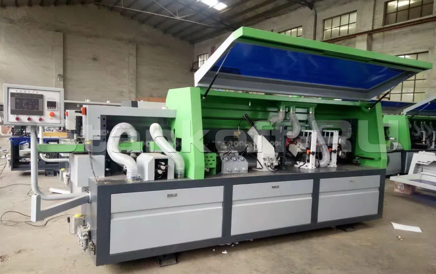 Предназначен для облицовывания прямолинейных кромок плитных материалов рулонными кромками АБС, ПВХ и полосовым кромочным материалом толщиной до 3мм.