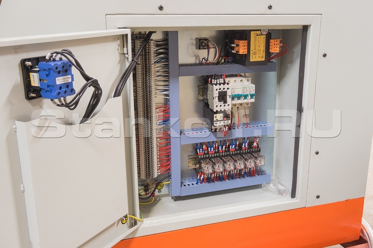 Гидравлический и электрический ролико-гибочный станок полностью управляется гидравлической системой. Ножная педель контролирует вращение вперед/назад, а включение и отключение гидравлической системы, сброс режимов, поднятие и опускание задней оси контролируются кнопками на лицевой панели.
