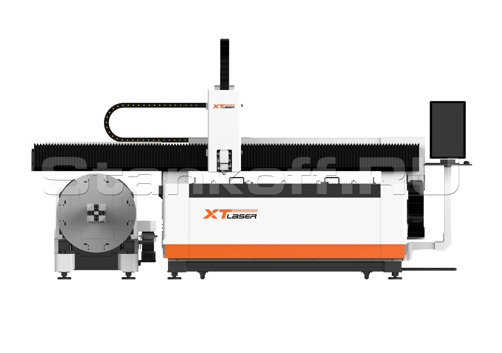 Все подвижные механизмы станка закрыты защитными кожухами для предотвращения попадания крупно и мелкодисперсной металлической пыли. Для удобства эксплуатации лазерный комплекс оснащён централизованной системой автоматической смазки. Система подаёт смазывающую жидкость в подвижные элементы с заданным давлением и интервалом.Современный вертикально-ориентированный экран
