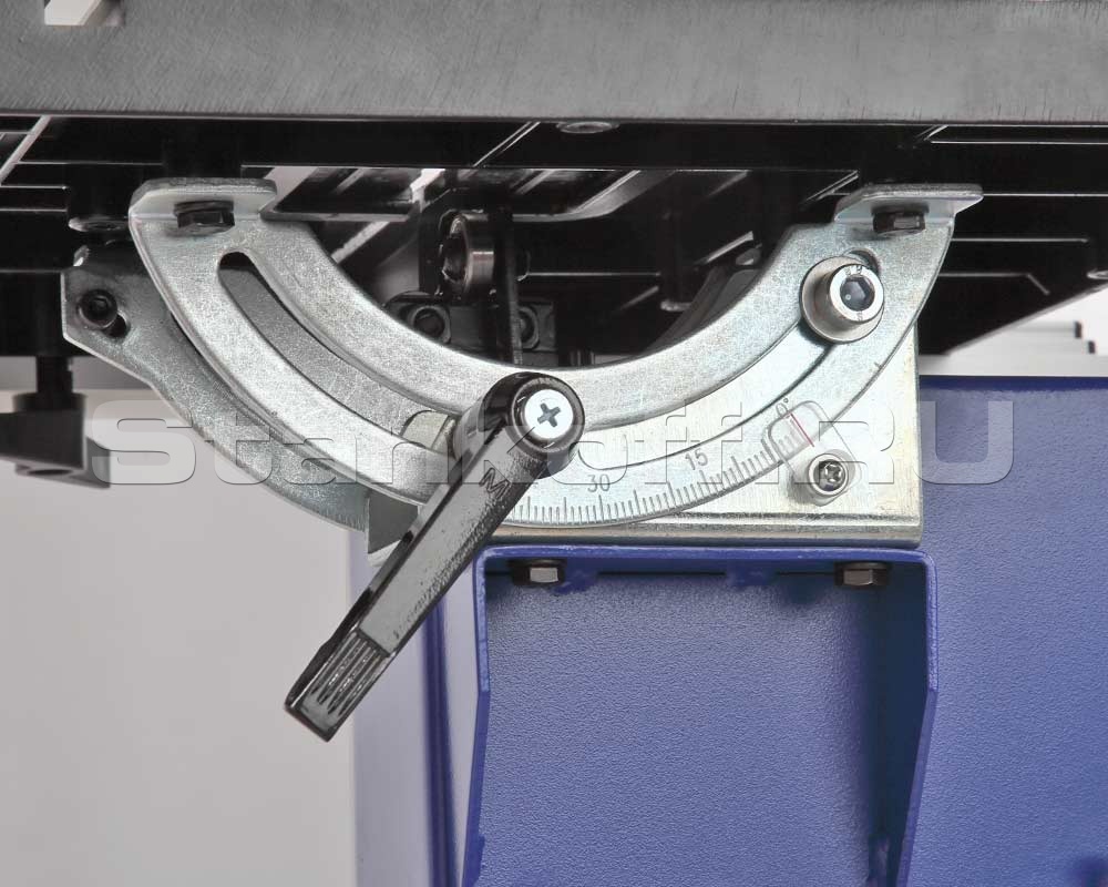 Рабочий стол, как и параллельный упор изготовлен из алюминия. Максимальная габарит обрабатываемой заготовки составляет Ш×В - 245×152 мм. Станок имеет две скорости пильного полотна: 1 - 400 м/мин., 2 - 800 м/мин. Для подключения вытяжной установки предусмотрено три патрубка диаметром - 49/74/99 мм. На рабочий стол устанавливаются параллельный и угловой упоры.