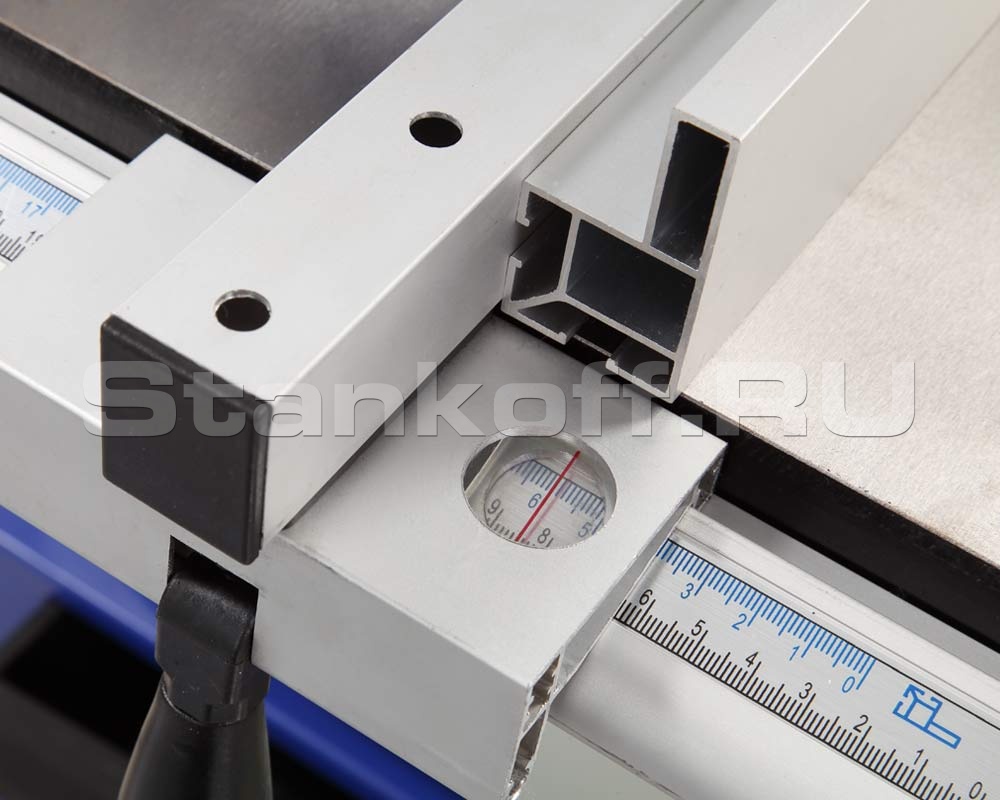 Шкала на направляющей параллельного упора, сопутствует более точной настройке станка для прямолинейного распила.Простота подготовки
