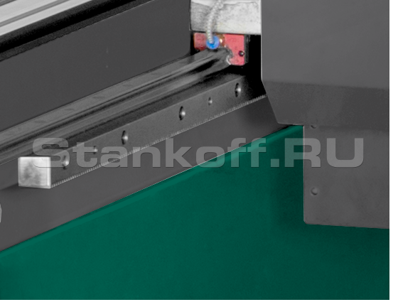 Станок по всем осям оснащен квадратными линейными направляющими и каретками фирмы TBI. Сечение направляющих 20 мм. Такие направляющие в сочетании с линейными подшипниками (каретками) имеют очень высокую динамическую грузоподъемность – 21,2 кН (килоньютонов). Что в сочетание с высокой жесткостью станины и портала дает не только высокую жесткость самого станка, но также и большой рабочий ресурс.Косозубая рейка