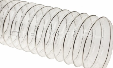 Материал: высококачественный ТПУ немецкого производства, стальная спираль. Температура: от -40°С до +90°С (кратковременно до +125°С). Стойкость: к ультрафиолету, абразиву, маслам и бензину, гидролизу, микробам. Применение: для отсоса абразивной пыли, стружки, опилок, дыма, используется в установках кондиционирования и вентиляции, для подвижных деревообрабатывающих станков. В сельском хозяйстве – устанавливается на посевную технику.