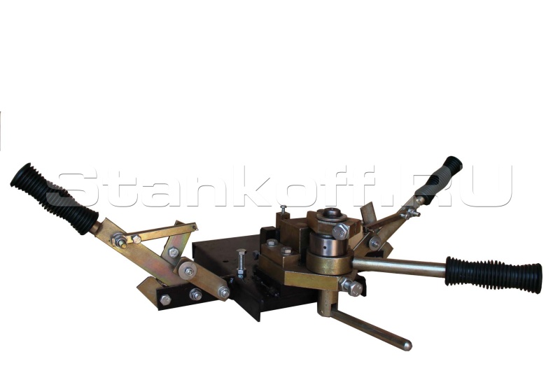 Разводной станок РУ-06.9 обеспечивает наиболее качественную разводку, по сравнению с ранее выпускаемыми конструкциями разводных станков, достигаемую применением двух эксцентриков, изготовленных в одной детали (один для зажима пилы, другой - для передачи давления на зуб пилы). Станок снабжен двумя рукоятками для подачи пилы по шагу. По желанию заказчика при поставке станка может комплектоваться как с индикатором часового типа ИЧ-10, так и без него.