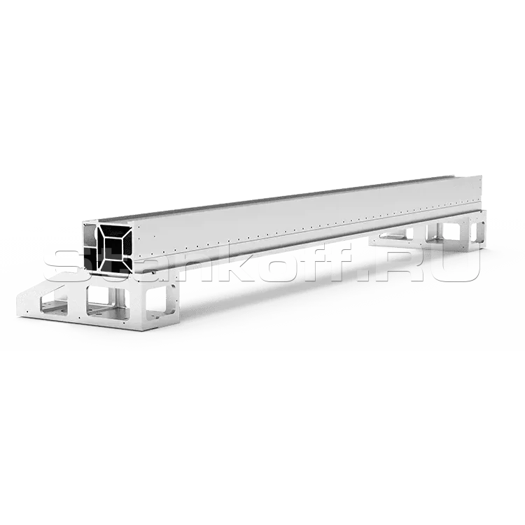 Станина сварена из высококачественных труб и с дополнительным утяжелением. Станина подвержена высокотемпературному отжигу, значительно повышающему ее прочность, твердость, износостойкость. Характеризуется большим весом, прочностью и надежностью.Литой алюминиевый портал