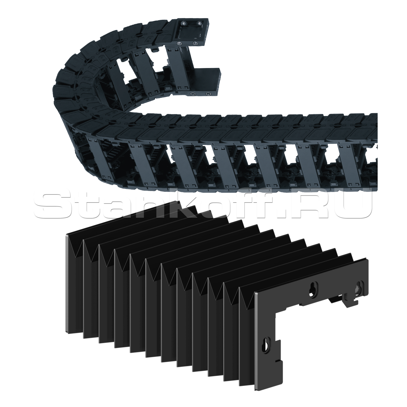 Все подвижные части закрыты гофрозащитой. Все кабели уложены в гибкие кабельные цепи.