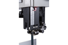 Jet JWBS-18-T 400 В – новая ленточная пила для профессионального применения. Ее основное преимущество на фоне аналогов прошлых поколений – увеличенная высота распиловки. Этот параметр очень важен для тех, кому нужен универсальный станок, способный взять на себя функции делительного. К подобным работам приспособлен и параллельный упор: направляющий профиль можно установить вертикально на боковую грань так, чтобы надежно фиксировать плоские заготовки при их роспуске на тонкие пластины. В целом конструкция бокового упора очень хорошо проработана и соответствует самым строгим требованиям: профиль жесткий и прочный, закреплен на массивном чугунном кронштейне, который перемещается по цилиндрической направляющей. Предусмотрена грубая (вручную) и точная (микрометрическим винтом) установка.