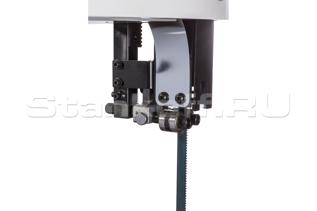 Механизм натяжения и центрирования ленты включает в себя две группы трехроликовых направляющих на шарикоподшипниках, стрелочный индикатор уровня натяжения, регулирующие маховики, два смотровых окошка и рычаг быстрого натяжения-ослабления. Он не совсем обычен, поскольку имеет не два, а три фиксированных положения: рабочее (плотно натянуто), для хранения (лента ослаблена, но держится на шкивах) и сервисное (для замены полотна). Чтобы улучшить плавность работы, использованы чугунные шкивы с массивным телом, а не в виде спицованных колес, как раньше.