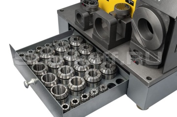 - Три цанговых патрона (от Ø3 до Ø13 мм, от Ø14 до Ø30 мм, от Ø31 до Ø32 мм) с 30 цангами в комплекте поставки.