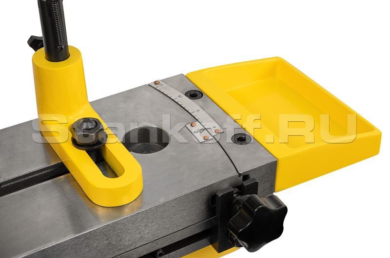 Линейные направляющие продольного перемещения рабочего стола. Шариковые винты перемещения стола и шлифовальной головы. Механизированный подъем и опускание шлифовальной головки. Вращение шлифовального круга на 360° в горизонтальной плоскости, на 20° вверх и на 40° вниз в вертикальной плоскости относительно горизонтальной оси. На шлифовальной головке предустановлено два круга (корундовый и алмазный чашечный) с возможностью быстрой замены рабочего круга. Может использоваться для круглой и внутренней шлифовки.