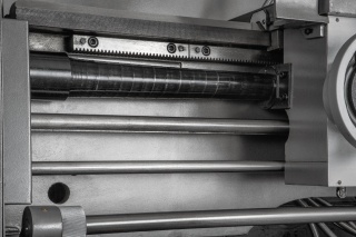 Расстояние между центрами - 1015 мм. GH-1840 ZX DRO поставляется с устройством УЦИ, что позволяет ускорить рабочий процесс и снизить вероятность брака. Станок устанавливается на массивную станину из особого чугуна, ее направляющие закаливаются токами высокой частоты, шлифуются и покрываются особым составом для минимизации трения. GH-1840 ZX DRO имеет 122 режима продольных и поперечных подач в автоматическом режиме, что позволяет нарезать все известные типы резьб. Обороты шпинделя можно выбирать из 12 предустановленных режимов.