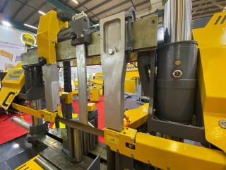 Автоматические подающие тиски с приводными роликами. Величина подачи контролируется энкодером с пульта управления.
