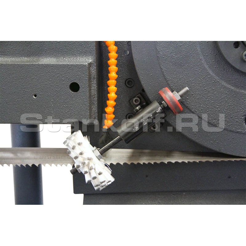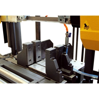 Промышленный автоматический ленточнопильный станок двухколонного типа подходит для распила заготовок со сплошным сечением, цельнометаллических балок. Оснащён программным контроллером управления с памятью на 10 программ резки. Модифицированная панель управления с удобным расположением. Станок оснащён гидроцилиндром подъёма пильной рамы, двойными гидравлическими зажимными тисками и плавной регулировкой хода пильного полотна. Процесс резки осуществляется с поворотом механизма под разными углами. Натяжение полотна осуществляется вручную.
