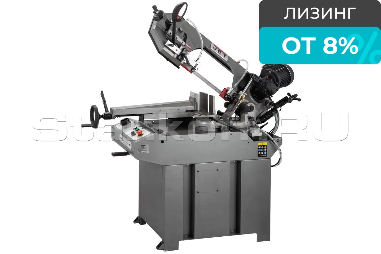 Консоль станка оборудована направляющими, позволяющими регулировать проход полотна и предотвращать уводку ленточного полотна в сторону. Наличие в конструкции подшипников обеспечивает позиционирование полотна относительно обрабатываемой заготовки, способствует повышению точности и качеству распила. Ленточнопильный станок оборудован системой подачи СОЖ, встроенная в удобную тумбу-подставку и корд-щетку для удаления стружки. Вес станка составляет 195 кг.