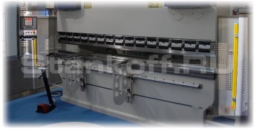 Пресс KPA 100/2500 – листогибочный пресс с увеличенным ходом верхней траверсы и горловиной в боковых стойках. Отличается высокой скоростью работы и улучшенными характеристиками. Оснащен электронно-гидравлической синхронизацией рабочих цилиндров, контролем параллельности и хода подвижной балки через ЧПУ пропорциональными клапанами c использованием оптических линеек. Автоматическая регулировка усилия осуществляется с учетом обрабатываемого материала и используемого инструмента, а автоматическая регулировка хода, программируемая рабочая скорость и автоматический расчет развертки изделия по длине в совокупности с автоматически программируемым порядком гибов позволяют быстро получать качественное изделие. Гидравлический блок с гидроаппаратурой от ведущих производителей Германии, гидравлические цилиндры, изготовленные из цельной заготовки с хонингованием рабочей поверхности и кованые поршни цилиндров с высокоточной обработкой и полированием, гарантируют длительный срок эксплуатации данного оборудования.