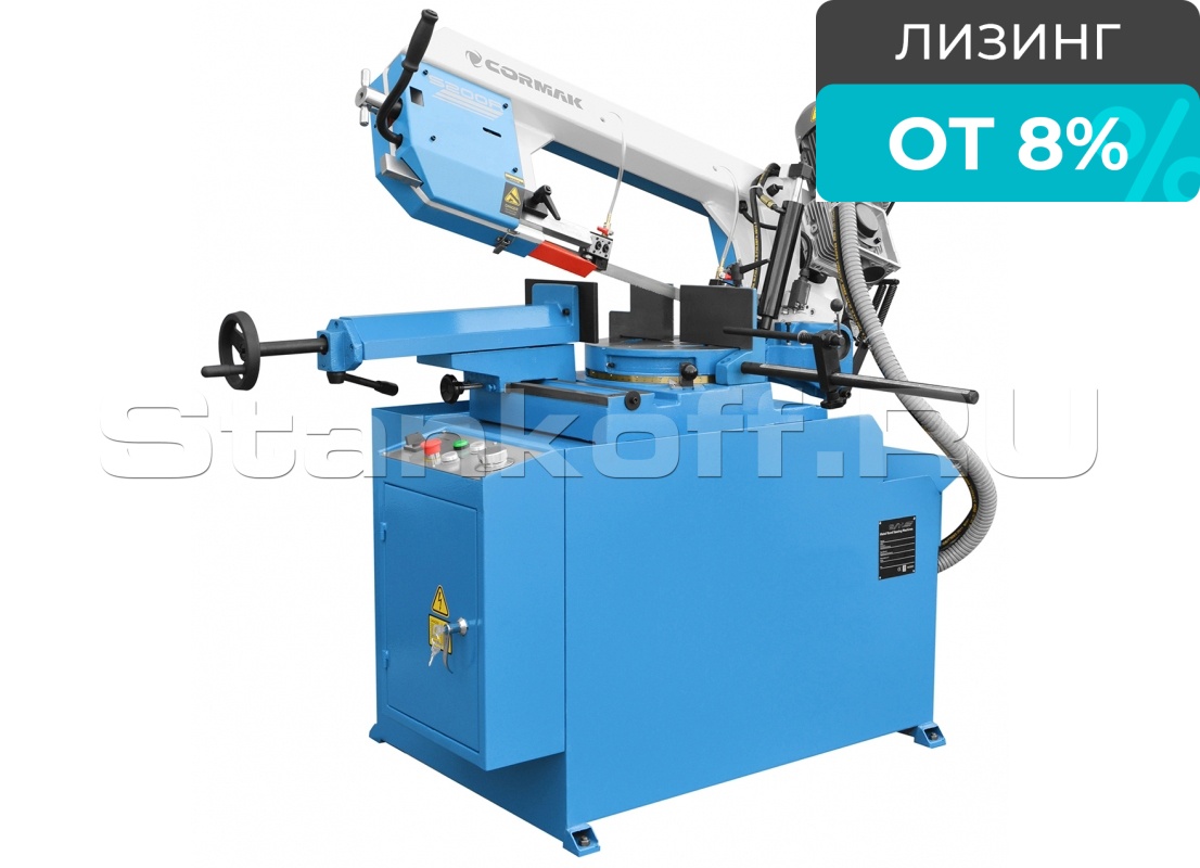 Рама станка изготовлена из литого чугуна, использование полотна пилы шириной 27 мм, позволяет в полном объёме осуществлять многосерийную резку, как профилей так и материалов полных. Быстрозажимные тиски расположены на регулируемой станине. Направляющие ленточного полотна оснащены твёрдосплавными пластинами. Именно эти пластины отвечают за точность и прямолинейность при резке. Рама станка оснащена автоматическим датчиком натяжения ленточнопильного полотна с наклоном 25°, что повышает срок службы пилы. В нижней части рамы закреплены очищающие щётки для идеально чистого использования пилы. Привод станка осуществляется с помощью зубчато-винтовой передачи заполненной трансмиссионным маслом.