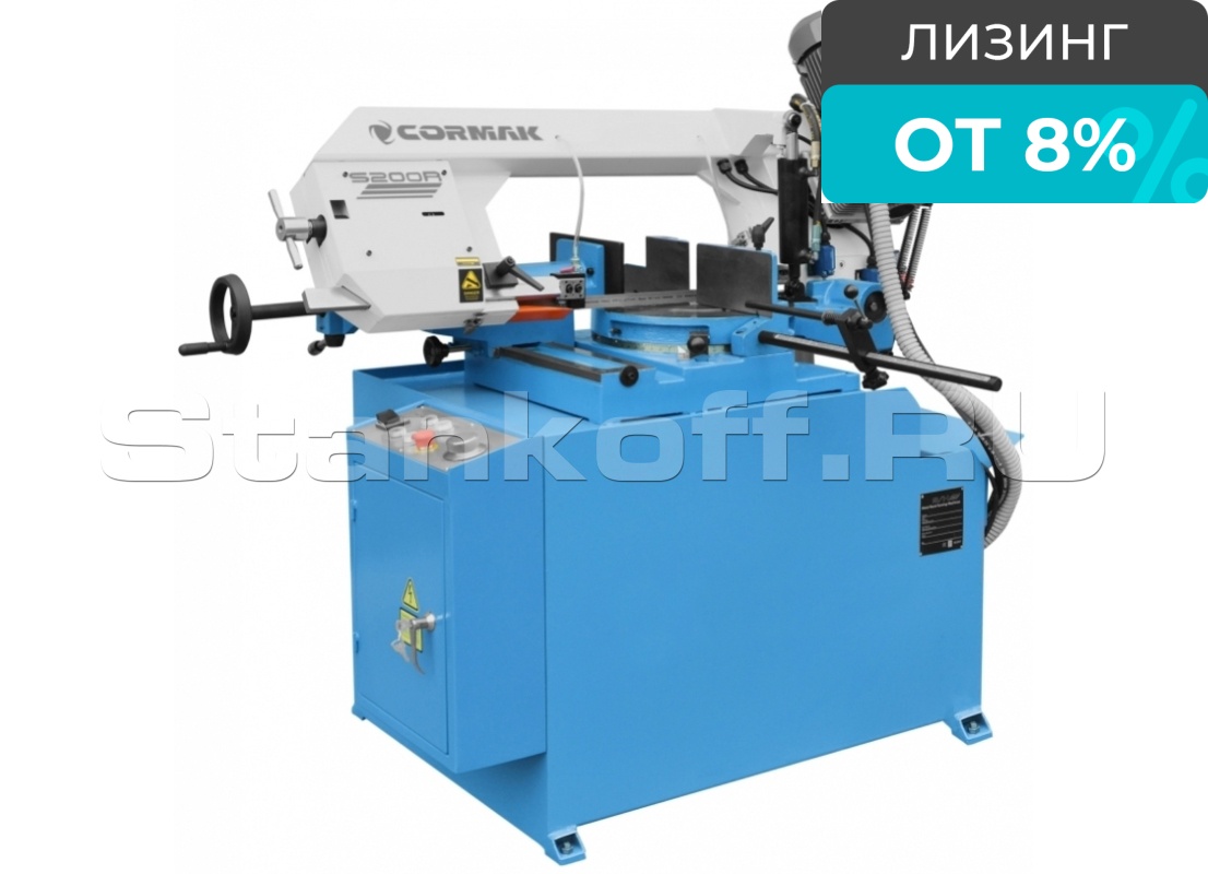 Ленточнопильный станок S-200R стандартно оснащён автоматическим подъёмом и опусканием рамы станка. Регулятор высоты позволяет подводить раму станка в зависимости от высоты материала. Благодаря автоматическому гидродемпферу ручное обслуживание станка значительно упрощено, до подачи и до установки разрезаемого материала в тисках.Рама изготовлена из литого чугуна, вместе с массивной и стабильной конструкцией станка обеспечивает исключительную жёсткость, что гарантирует безаварийную работу и точность резки. Инновационные и производственные ленточнопильные станки Cormak полуавтоматические и автоматические соответствуют нормам и стандартам ISO:90001 и ISO:140001, гарантируют безопасность, качество и точность. Использование двигателя фирмы ABB гарантируют долгую и надёжную работу.