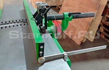Регулировка глубины фугования осуществляется рычагом, что позволяет быстро и точно устанавливать величину съёма материала.Шейперный вал