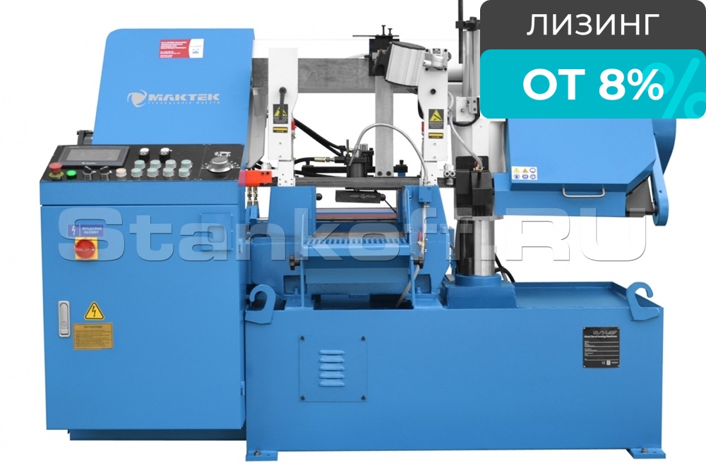Ровный рез обеспечивают направляющие станка состоящие из подшипников твердосплавных направляющих. Максимальные параметры резки и более длительный срок службы ленточной пилы обеспечивают — обильное охлаждение и чистящие щётки. Принудительное гидравлическое опускание рамы регулируется в широком диапазоне с помощью дроссельного клапана. Система ускоренной подачи, позволяет максимально сократить время резки. Гидравлическая система подачи материала — позволяет автоматизировать цикл работы. Контроллер станка оснащён дисплеем LCD, с русским языком, что позволяет легко программировать: действия пилы, сигнализировать окончание работы, передавать сигналы ошибок и информировать о количестве разрезанных элементов во время запрограммированного времени. Максимальная длина подачи материала — 500 мм с точностью +/- 0,2 мм.