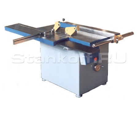Станина станка - жесткая сварная конструкция коробчатой формы. Сверху установлен рабочий чугунный стол. На столе крепится направляющая линейка усиленной конструкции, ограждение пилы с патрубком для стружкоотсоса и когтевой защитой от обратного выброса заготовки. Внутри станины на подмоторной плите расположен суппорт с приводом и механизм регулировки степени выступания пильного диска над столом станка.