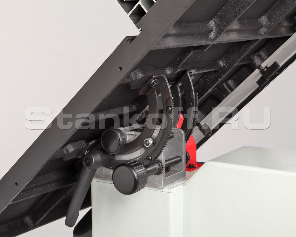 Благодаря зубчатой направляющей можно точно выставить угол наклона рабочего стола в диапазоне от -5 до +45 градусов.| Станок ленточнопильный | 1 |