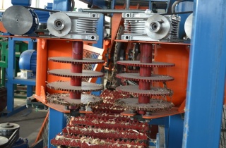 Станок многопильный дисковой, предназначен для продольной распиловки бревен с целью получения лафетов и необрезных досок. Подача сырья в пильный блок, осуществляется с помощью гусеничной транспортной системы. Фиксация бревна происходит с помощью автоматических пневмо-прижимов. Многопильный станок на дисковых пилах обеспечивает надежную работу даже при круглосуточной загрузке. Его конструкция отвечает всем современным требованиям безопасности.Простота настройки расстояния между пилами, обеспечивает, быстрое получение пиломатериала нужного размера. Станок обладает колоссальной производительностью от 50 до 120 м³ в смену. По желанию заказчика станок может комплектоваться транспортером для выгребания опилок, приводными рольгангами, манипулятором поштучной выдачи бревна.