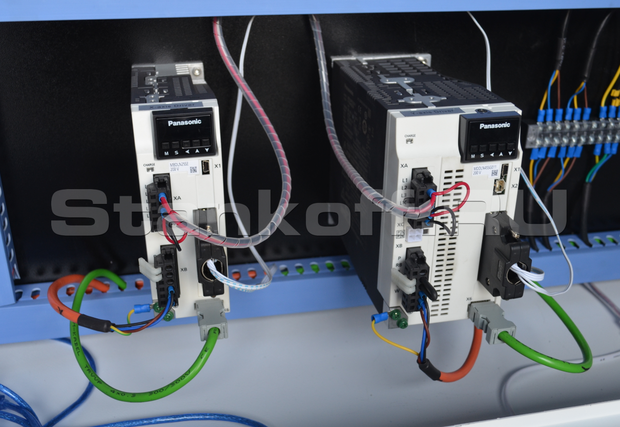 За скорость и инерцию станка отвечают мощные сервоприводы Panasonic (Япония). Преимущества сервоприводов Panasonic, это прежде всего традиционная японская надежность и точность. Мощность по оси X 400 Вт, по оси Y 1000 Вт.Регулятор подачи газа