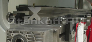 Электромеханический задний упор с автоматическим перемещением по оси X. Перемещение заднего упора осуществляется по линейным направляющим посредством высокоточной шарико-винтовой пары и сервомотора. Три откидывающихся упорных блока в ручную перемещаются по двум линейным направляющим вдоль балки заднего упора (оси Z), оснащены тремя упорными поверхностями и ручной регулировку по высоте (ось R). Каждый упорный блок оснащен лимбом для точной подстройки по оси X.Комплект секционных держателей