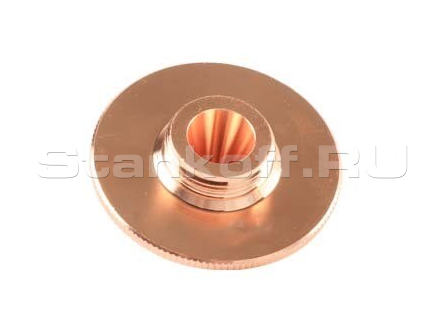 Используется в качестве электрода для корректной работы датчика слежения за поверхностью, а также для подачи лазерного излучения и режущего газа (опционально) в зону обработки. Срок службы зависит от условий эксплуатации. Все сопла Raytools характеризуются прочностью и надежностью. Сопловая часть лазерной головки состоит из керамического держателя и непосредственно сопла. Эта часть обеспечивает соосность лазерного излучения и струи газа. Во всех соплах используется функция центровки, которая позволяет быстро изменять и выравнивать положение сопла. Одинарные сопла используются для резки тонкого материала, нержавеющей стали и алюминия. Для полного охвата диапазона толщины сопла имеют диаметр в диапазоне от 0,8 мм до 10 мм.