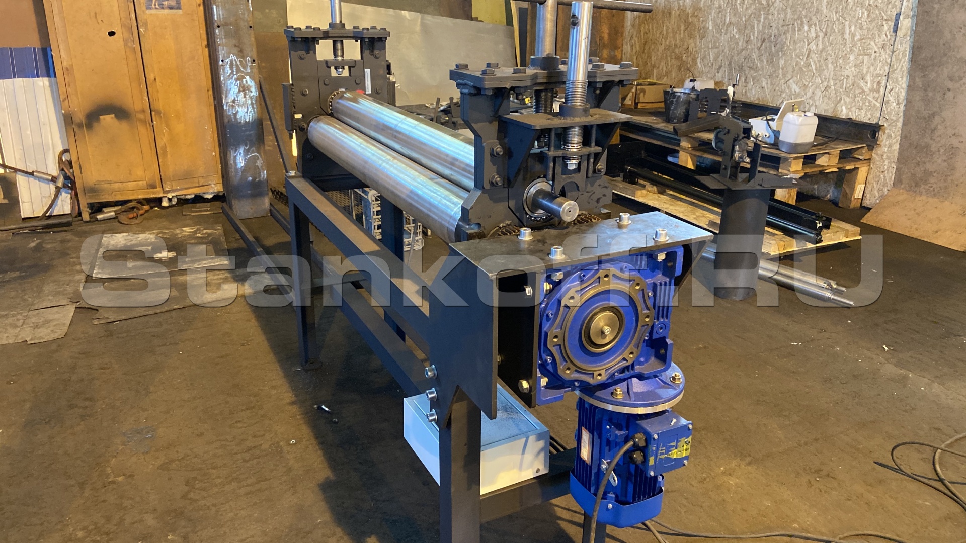 Вальцовочное оборудование электро привода собственного производства. Вальцы с параметрами: толщина металла от 0.35 до 4 мм. Трехвалковые. Рабочая длина 2500 В изготовлении вальцовочных машин используются цельнометаллические валы, игольчатые подшипники в обоймах не требующие обслуживания и дополнительной смазки на всех движущихся элементах. Конструкция станков из цельного металла полностью разборная и ремонтопригодная.