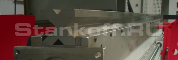 Гидравлическая система для автоматической компенсации деформаций верхней траверсы позволяет обеспечить идеальную параллельность между верхней и нижней траверсами при выполнении гибки. Прогиб верхней траверсы рассчитывается управляющим блоком теоретически на основании толщины листа, типа материала, угла сгиба и положения листа. Более того, при выполнении гибки прогиб верхней траверсы измеряется непосредственно специальными сенсорами, помещенными на верхней траверсе. Система бомбировки включает в себя серию гидравлических цилиндров малого размера, расположенных внутри нижней траверсы. Давление каждого из цилиндров регулируется управляющим блоком. Совокупное давление цилиндров бомбировки обеспечивает распределение деформаций на нижней траверсе, которое в точности компенсирует прогиб верхней траверсы. Система автоматической компенсации деформаций верхней траверсы гарантирует превосходный результат гибки по всей рабочей длине пресса, даже при использовании очень широких листов.