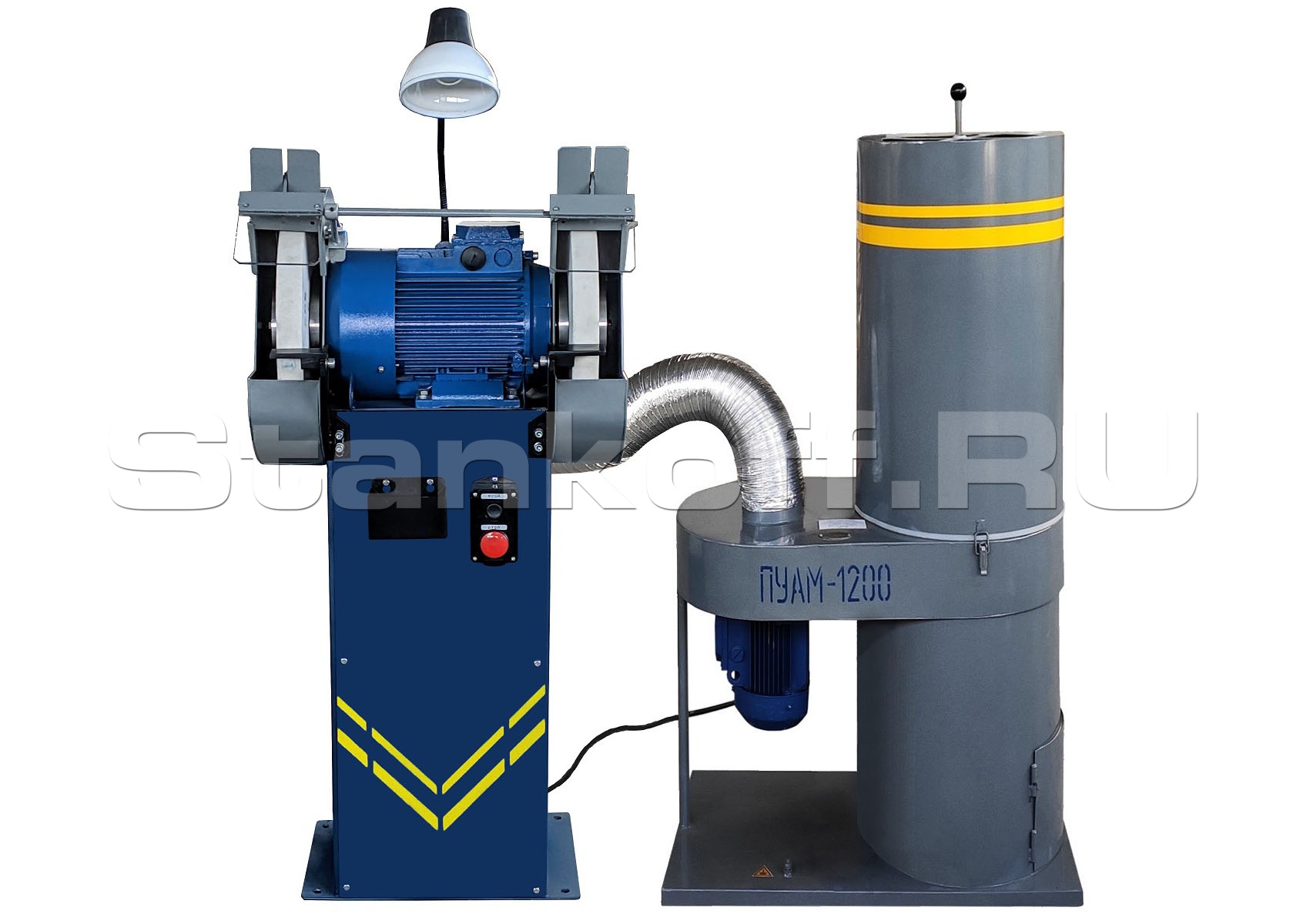 Станок точильно-шлифовальный ТШ-3ДБ (350 мм)-П предназначен для обработки изделий из металлических и неметаллических материалов при помощи абразивных кругов и поставляется совместно с пылеулавливающим агрегатом ПУАМ-1200.