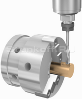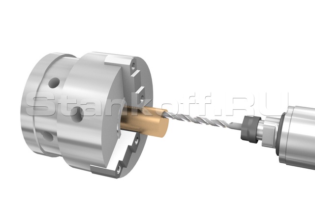 Имеет преимущество в жесткости инструментальных блоков к револьверной головке за счет крепления 4-мя болтами к револьверу. Это позволяет производить обработку при тяжелых режимах резания и обеспечивать высокую точность, позволяет достичь высокой производительности и сократить вспомогательное время, т.к. возможно производить обработку с большими припусками.