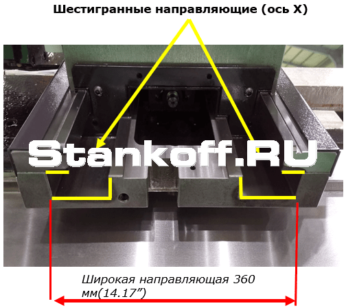 Шестигранная конструкция и направляющие увеличенного сечения, изготовленные из цельной отливки, способствуют производительной обработке в самых тяжелых условиях.Направляющие оси Х: