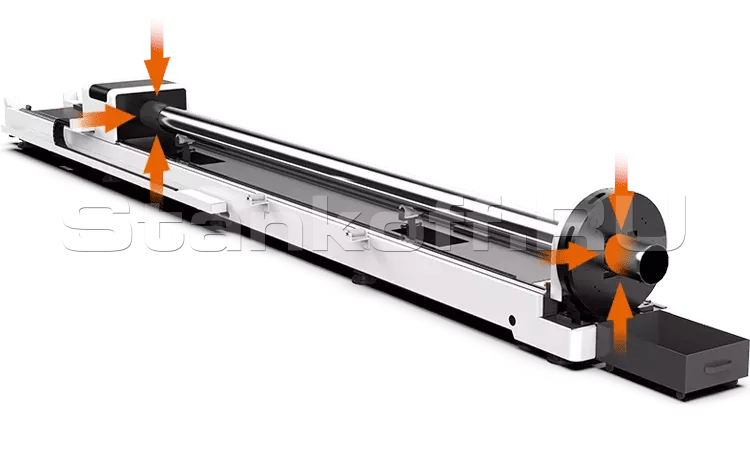 На рабочем столе расположено несколько шаровых опор для облегчения легкости подачи. Еще одним способом подачи является ролик. После подключения газа ролик поднимается выше стола резки таким образом, чтобы обеспечить оптимальную подачу. Одним из важнейших преимуществ данной системы подачи является предотвращение царапин материала. Сокращает время погрузочно-разгрузочных работ на 10%.Металлическая защита гофры и кабельные цепи
