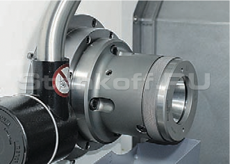 На станке применяется высокоточный жесткий шпиндель, специально разработанный для высокоскоростного точения, а именно до 6000 об/мин. Шпиндель имеет полноценную С-ось. Используются прецизионные подшипники класса Р4, предоставляя высокую осевую тяговую способность. Это обеспечивает повышенную точность при проведении ответственных резов.
