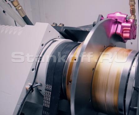 На станке применяется высокоточный жесткий шпиндель, фирмы DA HE, производства Тайвань, шпиндель имеет полноценную С-ось. Используются прецизионные подшипники класса Р4, предоставляя высокую осевую тяговую способность. Это обеспечивает повышенную точность при проведении ответственных резов. Гидравлический тормоз шпинделя способен обеспечить плавное движение по оси С - для обработки с небольшим торможением. Мощный тормоз способен остановить и поглотить всю вибрацию от фрезерных операций.