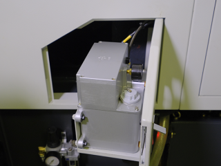 Для работы с прутком и соединения с автоматическим устройством подачи прутка, на станке смонтированы необходимые разъёмы для подключения. В электрошкафу подведены кабели и подключены необходимые электрические платы для синхронизации работы прутокподатчика со станком. В процессе эксплуатации станка, подключение пруткоподатчика не составит затруднений у обычного оператора.Маслоотделитель (сепаратор СОЖ)