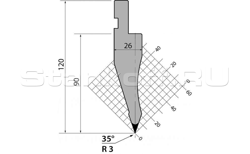 Н (высота), 120. Радиус гиба, 3. Градус гиба, 35. Тоннаж, 700. Материал, C45:560-710 N/mm².